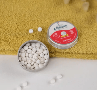 Xylitol**, Zea Mays Starch*, Calcium Citrate, Sodium Bicarbonate, Aroma, Citric Acid, Xanthan Gum, Magnesium Stearate, Sodium Myristoyl Glutamate, Zinc Citrate, Sodium Fluoride****, Vanillin***