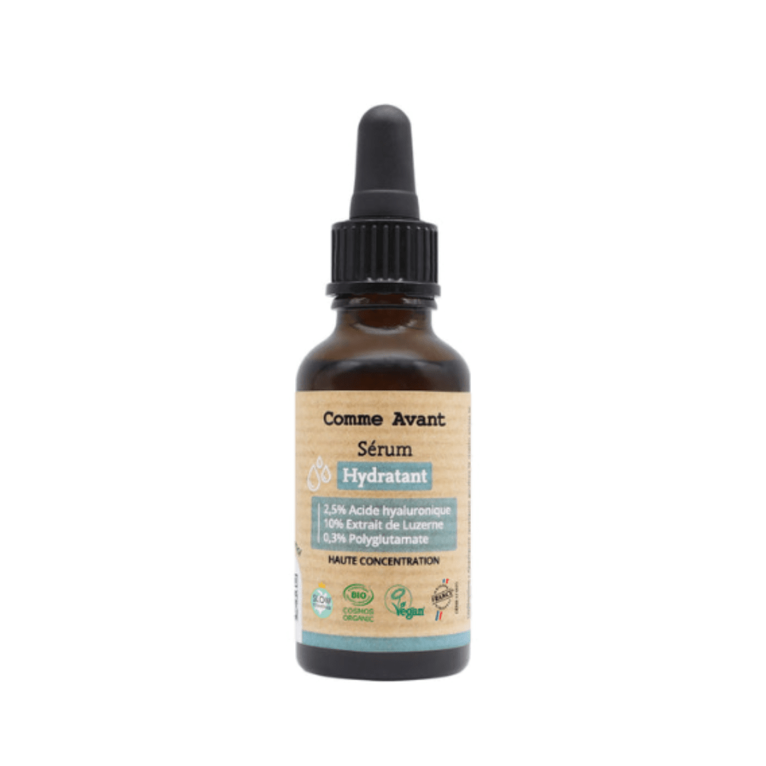 Découvrez ce sérum hydratant 100% d’origine naturelle et certifié bio COSMOS, contient 3 actifs hautement dosés comme l’acide hyaluronique et le polyglutamate pour hydrater intensément et retenir l’eau dans la peau.