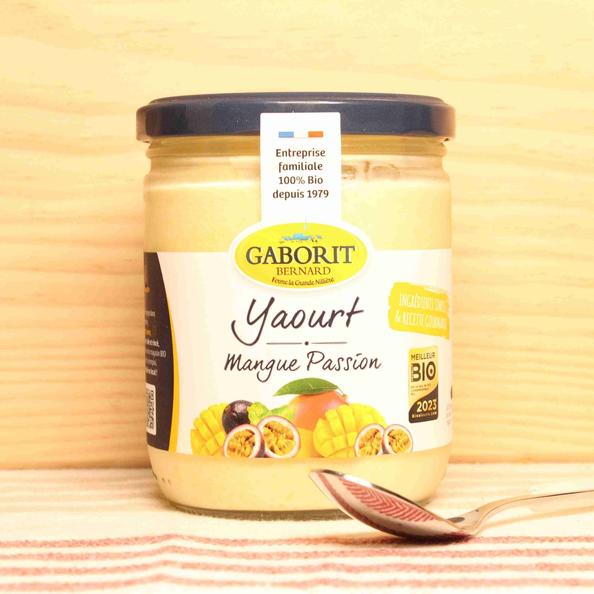 Lait entier de vaches Jersiaises*, préparation de fruits* 14% (mangue* 6.44%, passion* 0.56%, sucre*), sucre de canne roux non raffiné*, ferments lactiques.