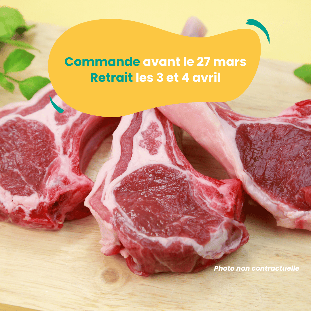 Pour réserver vos côtelettes d'agneau, un acompte de 14€ vous sera demandé. Ce produit étant facturé au poids, nous ajusterons le prix final de l'article en conséquence au moment du retrait. (Uniquement par CB)