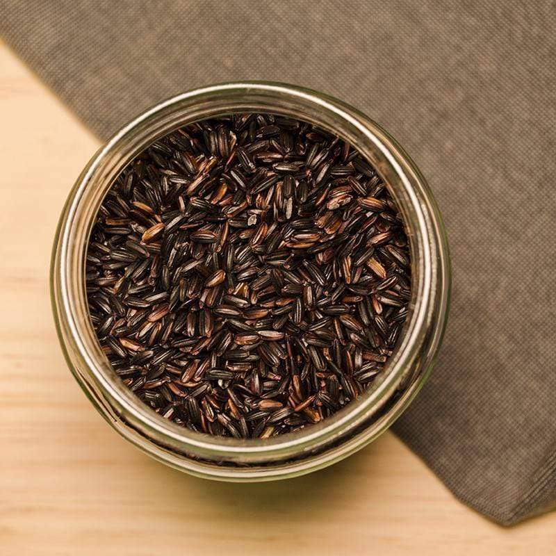 Riz noir complet* naturellement coloré et parfumé de ce léger goût de myrtilles et de mûres cuites qui rend fou !
